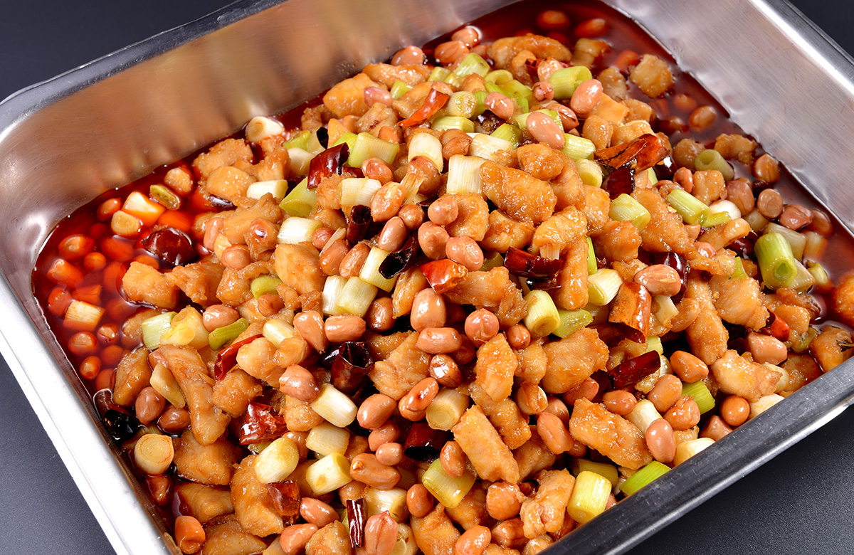 宫保鸡丁,是一道闻名中外的特色传统名菜。鲁菜、川菜、贵州菜中都有收录,原料、做法有差别。该菜式的起源与鲁菜中的酱爆鸡丁,和贵州菜的胡辣子鸡丁有关,后被清朝山东巡抚、四川总督丁宝桢改良发扬,形成了一道新菜式——宫保鸡丁,并流传至今,此道菜也被归纳为北京宫廷菜。之后宫保鸡丁也流传到国外