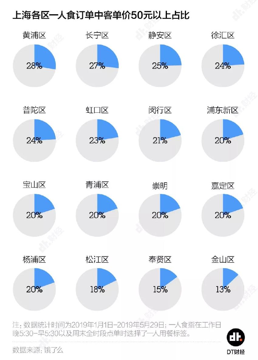 计算各区一人食客单价50元以上的订单占比,大致可以看出这个区域真正做到“一个人也要精致潇洒”的享受型孤独人群比例。