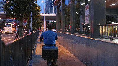 外卖订单的第一个高峰期出现在11:00-14:00 ,这个期间,是他们最忙的时候 ,手机上的提示音不断地响起,我们没来得及细问,他们便已出发。只能跟随着他们,体验他们一天的工作。