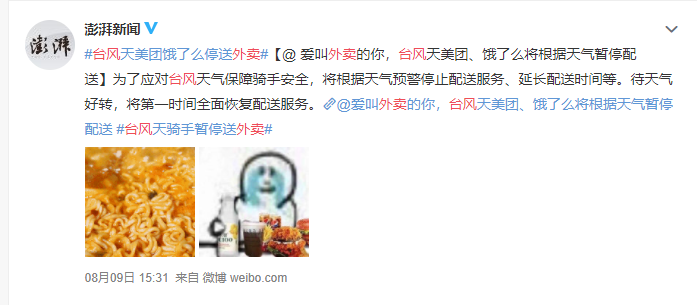 而外卖君则被一条:“台风天少点外卖”的微博话题引起注意。